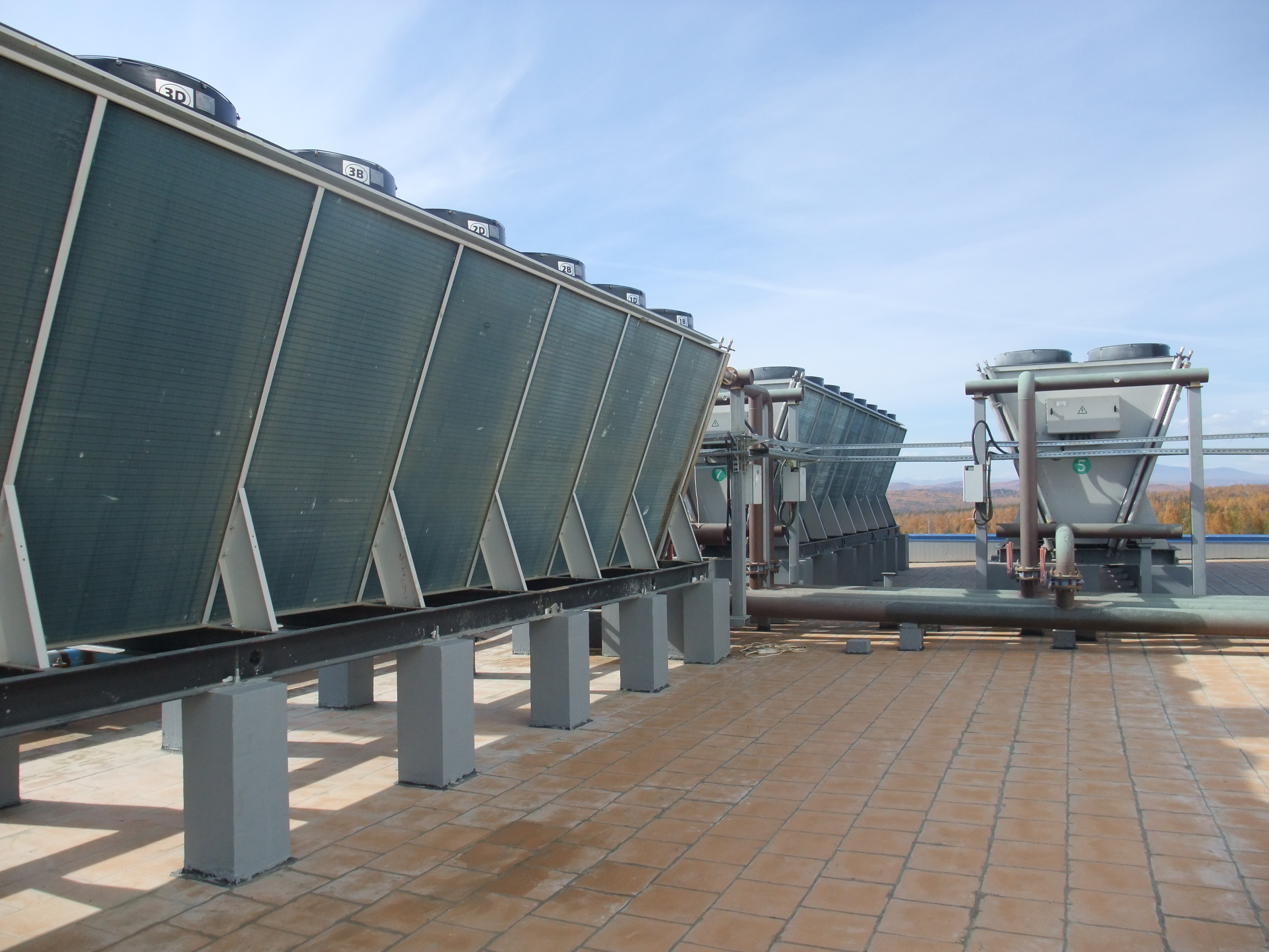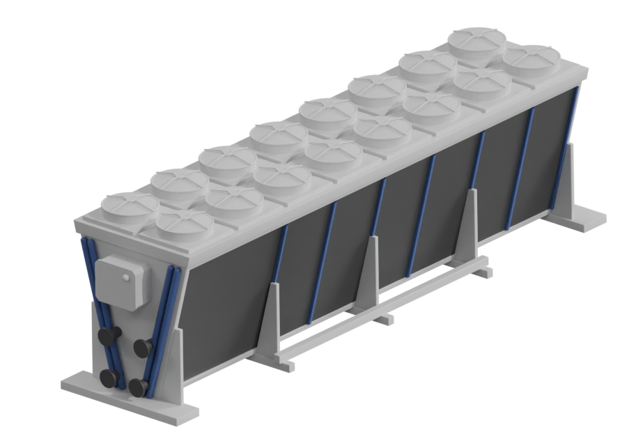 Сухие градирни серии DC (далее «сухие градирни») представляют собой пластинчато-трубчатые V-образные теплообменники закрытого типа с вентилятором в верхней части корпуса. Они применяются в водооборотных системах для охлаждения воды или других теплоносителей до температуры несколько выше температуры наружного воздуха по сухому (обычному) термометру. В стандартной сухой градирне трубки с пластинами теплообменника изготовлены либо из меди, либо из алюминия.