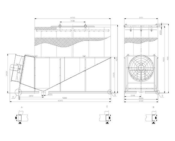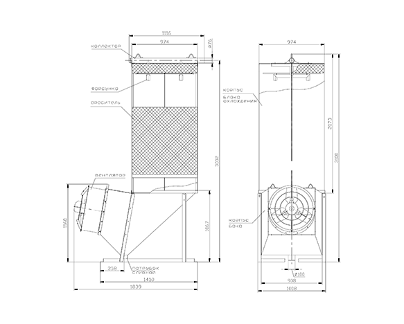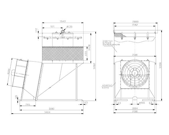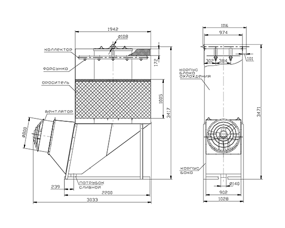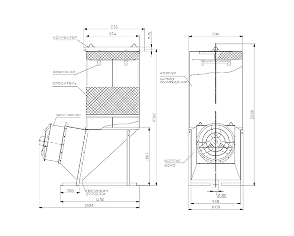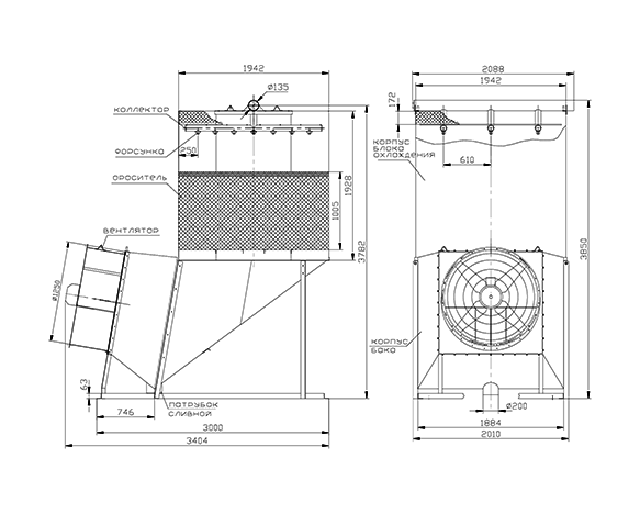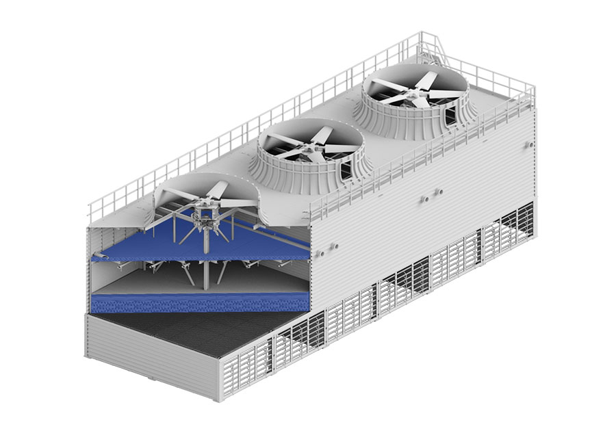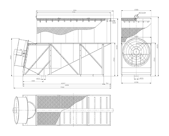 - обслуживания, раскладка блоков оросителя и водоуловителя, жалюзи, обшивка перегородки, вентиляторный узел и т.д.);