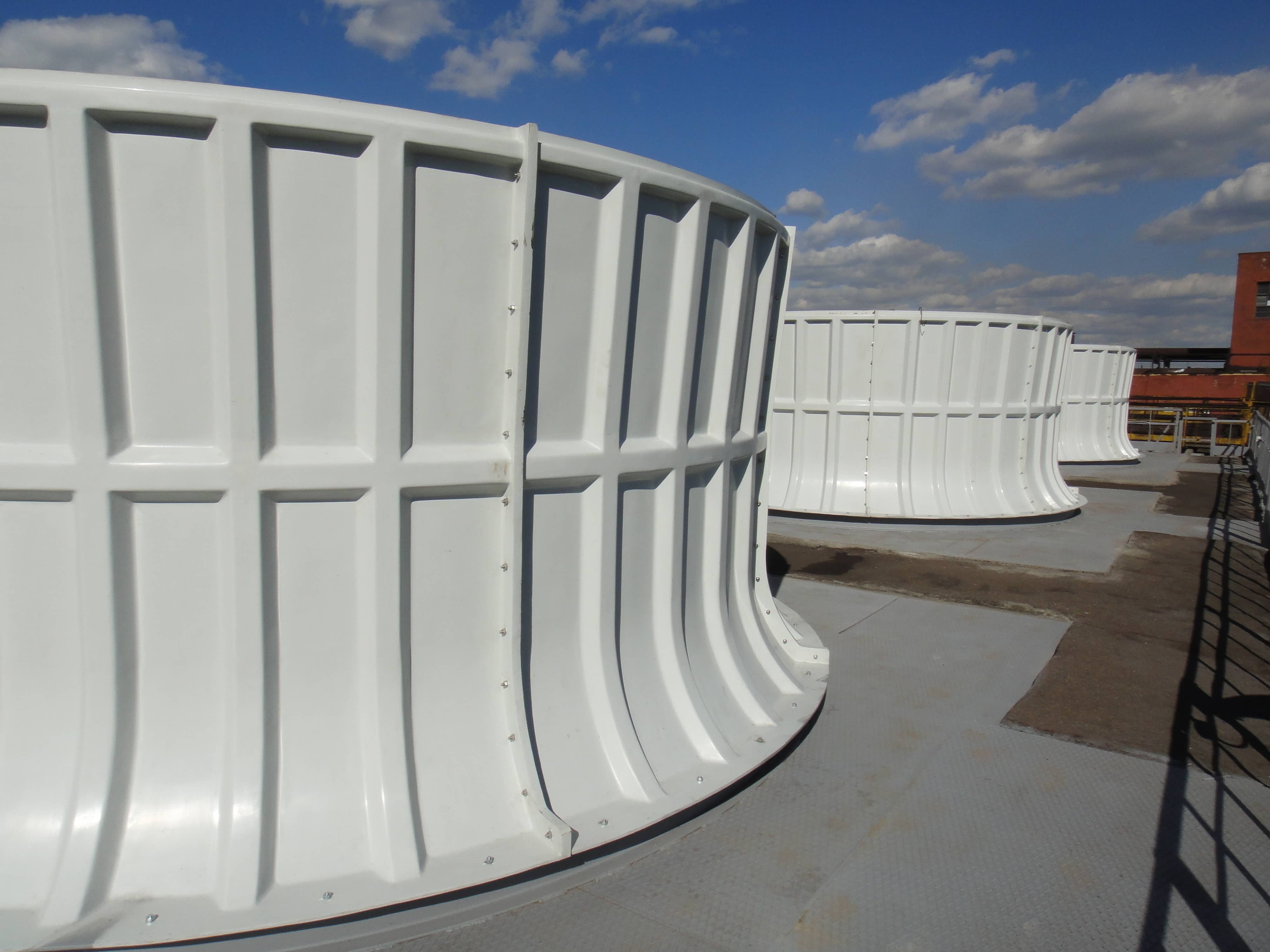 Диффузор изготовляется из ламинированного стеклопластика и предназначен для применения в вентиляторных градирнях. Он имеет специально разработанный параболический профиль, что способствует более совершенному, направленному течению воздуха во всей градирне. Особая конструкция диффузора с внешней ребристой поверхностью обеспечивает его высокую жесткость и способствует снижению шума и вибраций.