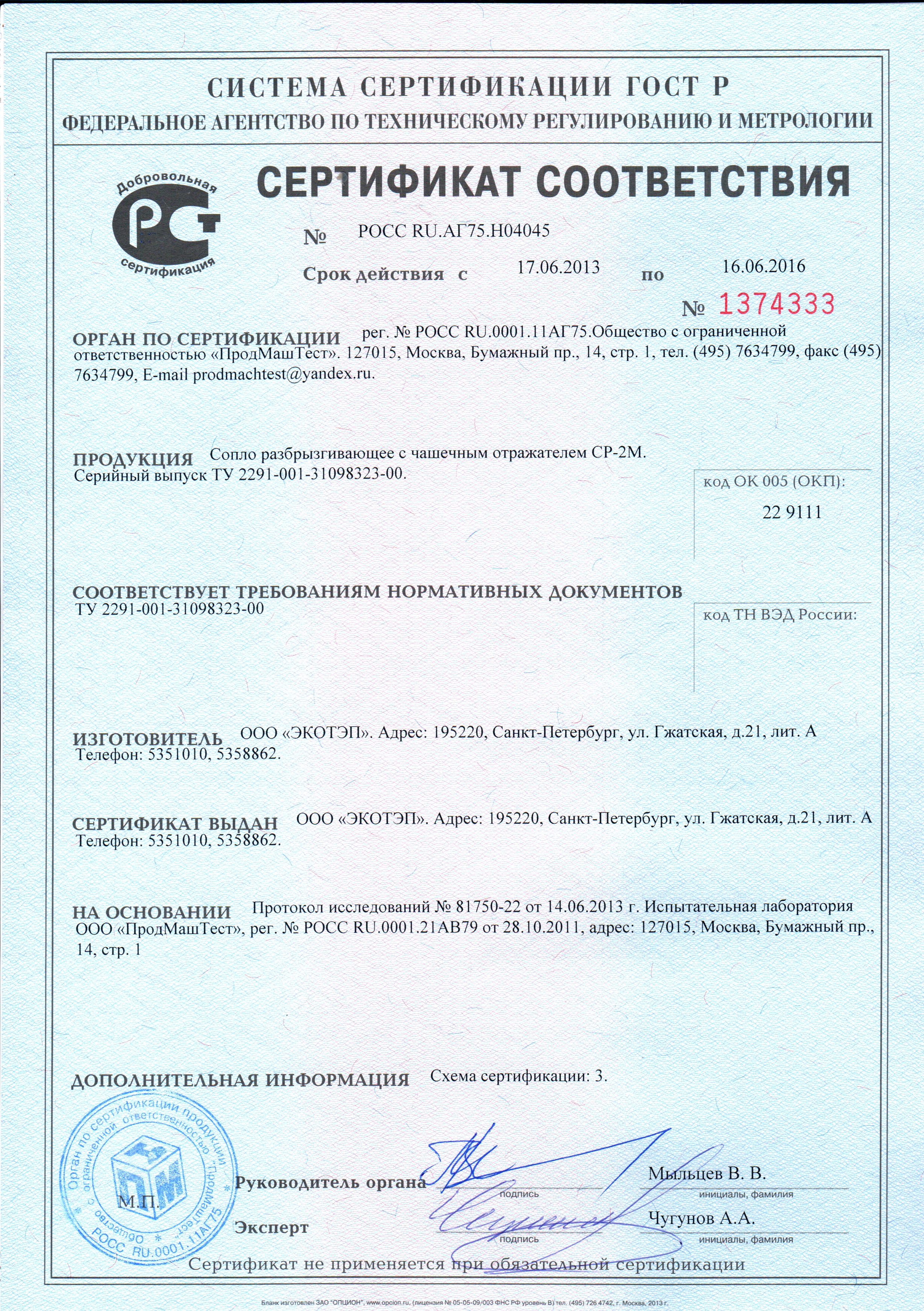 Компания ООО «ЭКОТЭП» много лет выпускает разбрызгивающие устройства с чашечным отражателем ТУ 2291-001-31098323-2000, сохранив все лучшие технологические качества типовой конструкции, но внеся ряд доработок, повышающих прочность и эксплуатационную привлекательность сопла: