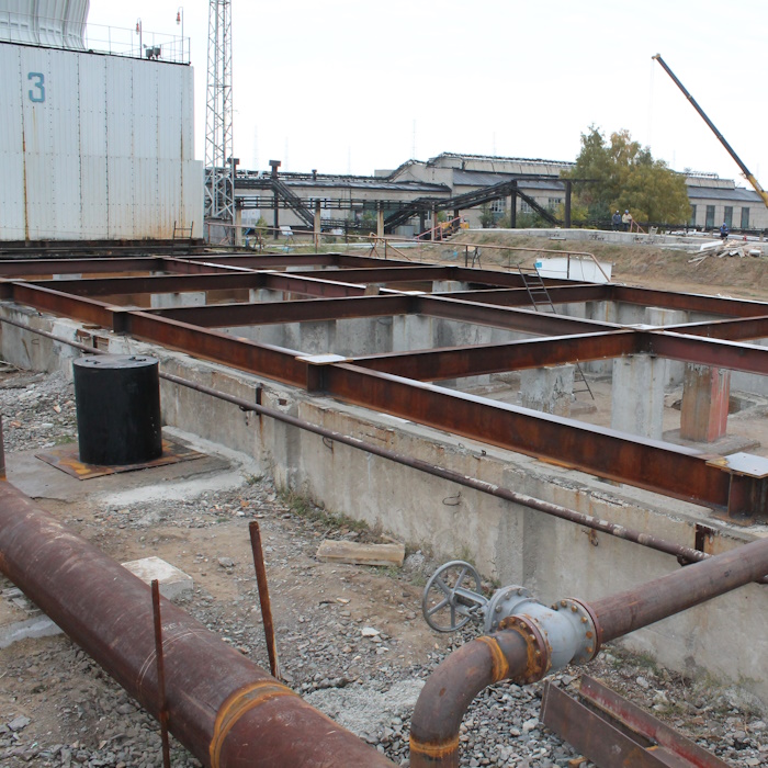 Вентиляторные градирни площадью орошения: 1 х 144 м2; 2 х 144 м2; 3 х 144 м2 Q = 5800 м3/ч.